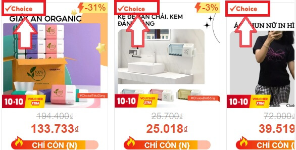 Mẹo mấu chốt: đơn chỉ nên chứa sản phẩm có nhãn Choice để hệ thống áp coucher ChoiceFreeship đúng điều kiện.