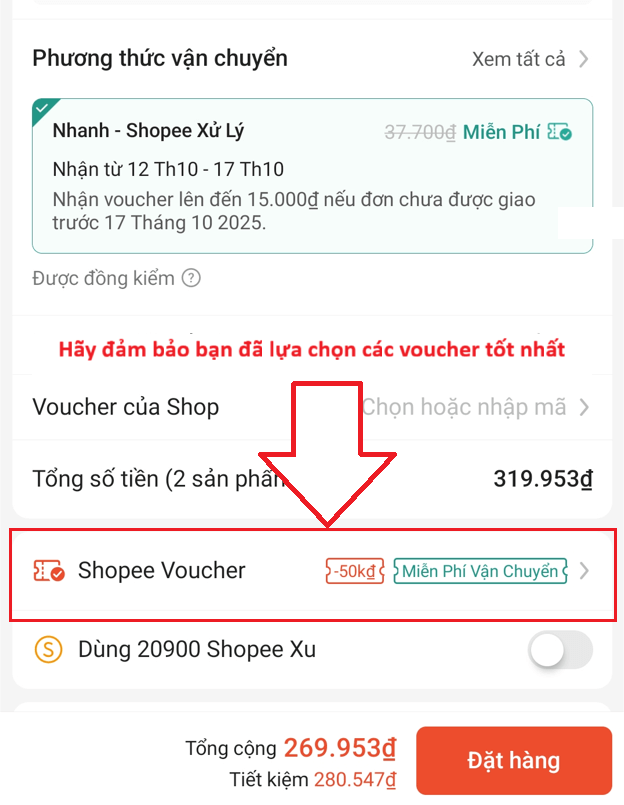 • Nếu phí ship còn cao, thử thêm 1–2 món nhỏ cho đủ ngưỡng Freeship cao hơn (nhiều trường hợp phí ship về 0₫). Voucher của Shop đủ điều kiện sẽ tự áp.